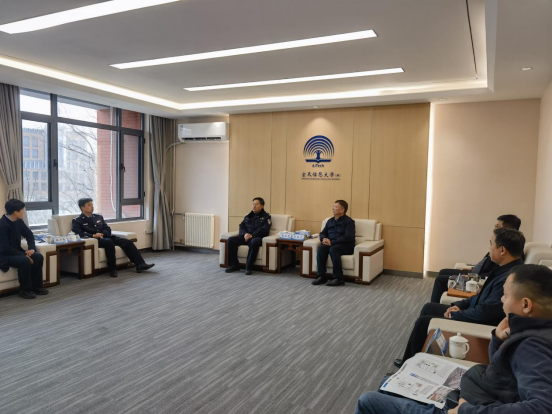 为进一步加强警校联动,深化平安校园建设,3月7日,驻校高级警长张云东、章丘区公安分局治安大队保安管理科科长彭广舰及双山第二派出所副所长林少瑜一行来校交流。空天信息大学(筹)临时党委副书记、内涵建设工作专班副主任(主持日常工作)张英杰,临时党委委员、内涵建设工作专班副主任李伯伟等在临时办公楼二楼接待室会见来访客人,欢迎张云东同志到任空天信息大学(筹)驻校高级警长。