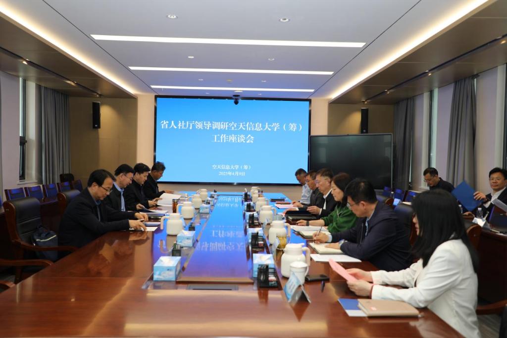 张涛对学校筹建工作取得的阶段性成果表示肯定。他指出,空天信息大学的筹建是我省优化高等教育布局、培养紧缺人才、发展空天信息产业的重要举措。省人社厅将充分发挥职能作用,在人事管理、薪酬福利等方面给予政策支持,助力学校高标准、高效率完成筹建任务。他强调,学校要聚焦“空天信息”特色,提前谋划师资队伍建设,健全内部管理机制,确保筹建工作与未来发展有效衔接。