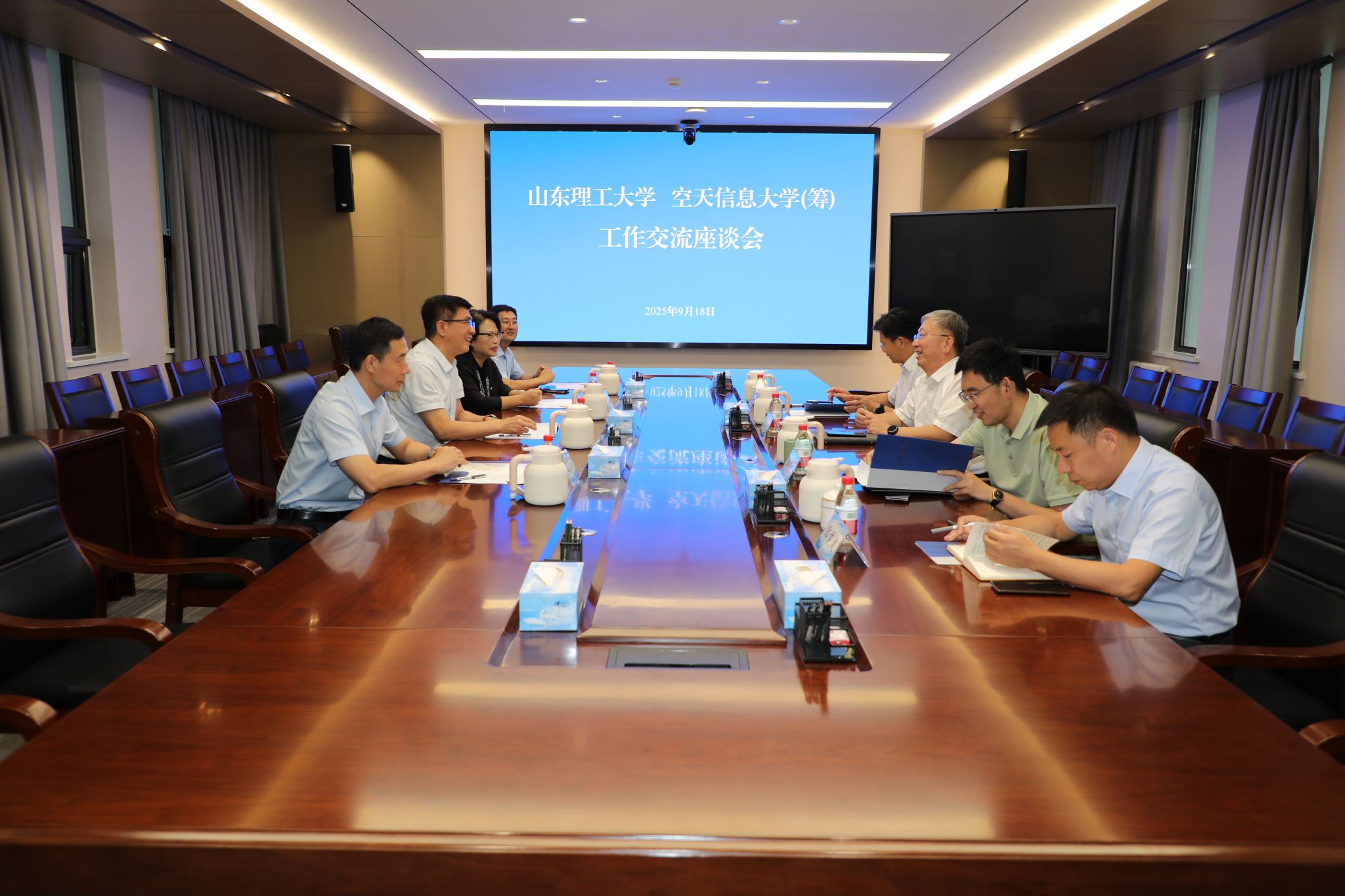 9月18日下午,山东理工大学党委书记于红波、校长李玉霞一行来校访问,与空天信息大学(筹)临时党委副书记、内涵建设工作专班副主任(主持日常工作)张英杰,内涵建设工作专班主任李晓明等开展工作交流座谈。