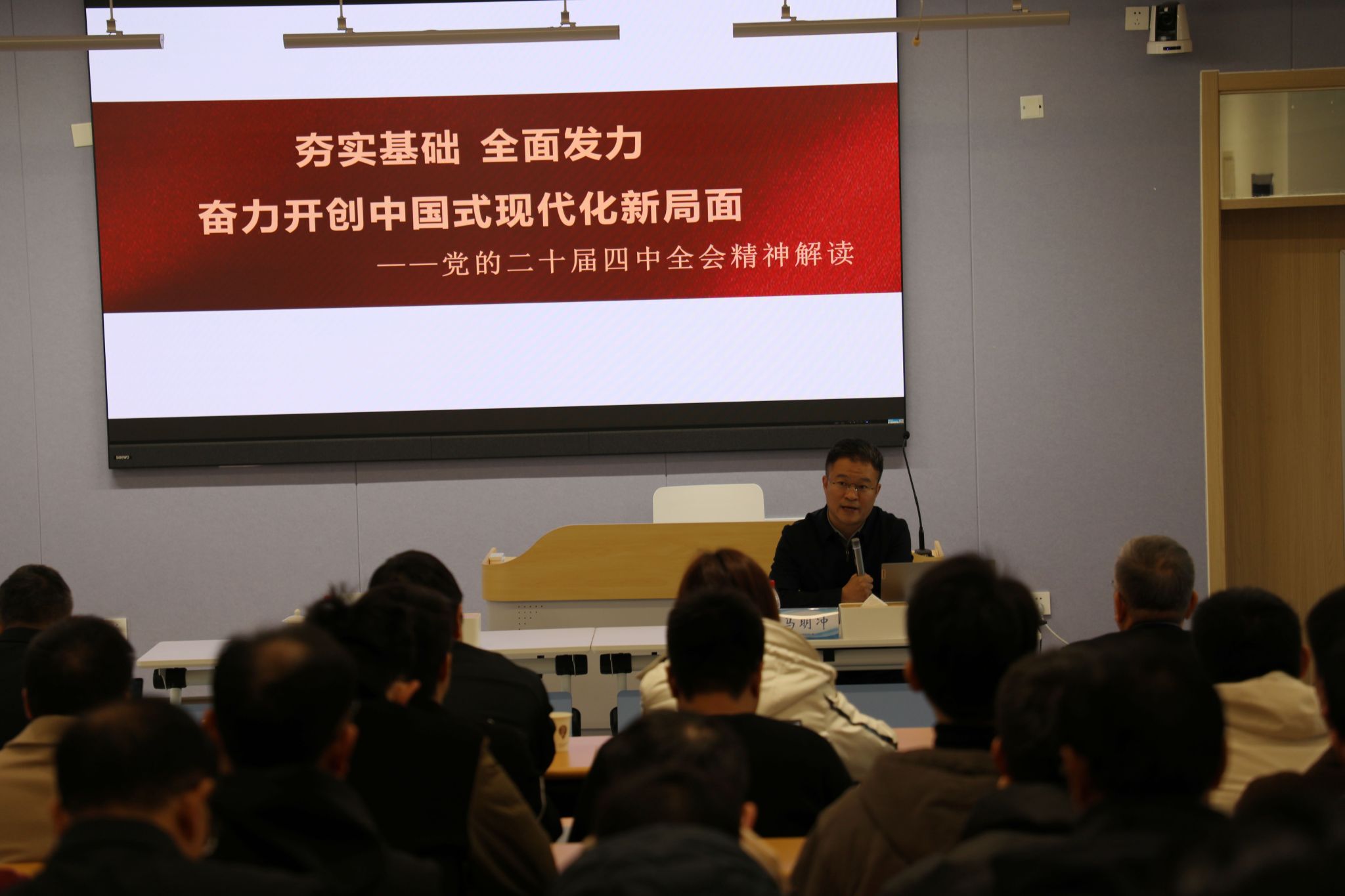 会上,马明冲以《夯实基础,全面发力——奋力开创中国式现代化建设新局面》为题作辅导报告。报告站位高远、内涵深刻,从历史方位、总体部署、重大任务三个方面系统阐释了党的二十届四中全会精神的核心要义,对学校科学编制“十五五”事业发展规划、扎实推进去筹建校各项工作具有重要指导意义。